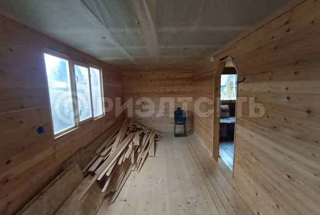 Во втором доме (24м): новый строящийся дом, утеплён, 1комната полностью сделана, а в большой комнате обшиты стены. Проведена подготовка к подключению электроэнергии. Имеется неустановленный био-туалет, небольшая печь. Дача находится недалеко от озера, хорошие соседи.